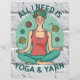 The phrase "Woman meditating with yarn, all I need is Yoga and Yarn" suggests that the woman finds both yoga and yarn crafting to be important aspects of her life. By combining the two activities, she is able to achieve a sense of relaxation, mindfulness, and creativity.