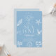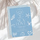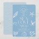 This chic coastal chic "All I Sea is Love" bridal shower invitation features a slate blue background with hand-drawn sunshine over waves, seashells, a starfish, coral, a school of fish, a whale tail—all in white. The Reverse side features a light blue background with waves. Personalize it for your needs. You can find matching products at my store.