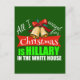 Beautiful green Democrat Christmas presents with All I Want for Christmas is Hillary in the White House written in elegant white script across a red banner and underneath lovely holiday bells. Mistletoe and bell image is from graphicsfactory.com. The only gift I need is for Hillary Clinton to win the election this November against Trump.
