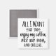 All I want is to enjoy my coffee, pet my dog, and chillax! This fun text design in black is all about relaxing with your dog. It's shown here on a custom fridge magnet. It's a cute design for dog lovers that just want to relax, drink their coffee, and hang out with their dog!
