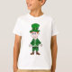 Drawing of a boy in a green outfit wearing a top hat with a four-flowered clover to get lucky and celebrate Saint Patrick's Day