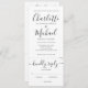 An all in one black and white wedding invitation featuring modern signature script names and elegant typography. The invitation includes an RSVP card that can be cut off and guest information details. Designed by Thisisnotme©