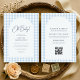 All in one blue gingham baby shower invitation featuring a sweet Oh Baby theme. Designed to include all shower details in one clean, easy to read layout. Perfect for celebrating a baby boy or a gender neutral baby shower with a classic gingham style. Ideal for farmhouse, southern, picnic, or traditional baby showers. Fully editable text and print-ready design.