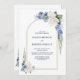 Invite your friends and loved ones to your wedding to witness and celebrate the beginning of your lifelong journey with this elegant blue and white floral arch invitation. The customisable text allows you to effortlessly add your names, wedding date, and the necessary details of your celebration. Designed for the budget-savvy couple, the reception venue location, RSVP response request, accommodation details, and any other information your guests may require can be included on the reverse side of this invitation, saving money on extra stationery. A variety of paper types and corner styles are available for your unique invitations, along with the option to download.