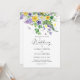 This is a lovely fresh and bohemian wildflower floral and greenery themed wedding invitation. The design features a variety of spring wildflowers including yellow daffodils, purple pansies, clovers, lavender, sweetpeas, dandelions, tulips and fern and ivy greenery. It also includes a few ladybirds, a sweet dragonfly and space on the back for reception details - great for the budget conscious soon to be married couple.