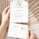 This all-in-one wedding invitation and RSVP card is a testament to both practicality and artistry, combining convenience with the classic beauty of the Arts and Crafts tradition. A delicate wreath with green vines and a touch of yellow roses adorns the header of the invitation, paying homage to the naturalistic patterns associated with William Morris. The understated elegance of the design is carried through to the tear-away RSVP, ensuring a seamless experience for guests. Soft, subtle colour tones create a gentle and inviting aesthetic, while the rounded corners add a modern touch. This invitation suite is perfect for couples who value simplicity, functionality, and the timeless charm of botanical illustrations.