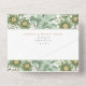 This innovative all-in-one wedding invitation combines convenience with classic elegance. Adorned with a charming botanical print, the envelope liner and tear-away RSVP section feature a lush pattern of green leaves and golden-hued flowers, encapsulating the beauty of a garden in bloom. The invitation unfolds to reveal a cleanly designed invite, with details of the special day presented in a sophisticated font. This clever design not only captures the essence of a traditional wedding but also offers a modern solution for RSVP management, making it a perfect choice for eco-conscious couples looking to blend practicality with the timeless allure of nature-inspired motifs.