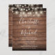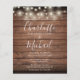 A stylish rustic budget wedding invitation featuring pretty string lights, signature style names and chic typography on a rustic wood background personalised with all your special wedding day information on the reverse, including your RSVP, accommodation, and additional details. Designed by Thisisnotme©