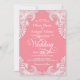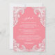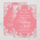 Invite your friends and loved ones to your wedding with this white lace pink all-in-one wedding invitation. Designed for the budget savvy couple, this invitation includes the reception information, RSVP request details, and any other information you may wish to include on the reverse side of the invitation, saving you the cost of purchasing extra postage and wedding stationery. Please note: No actual lace has been used in this invitation.