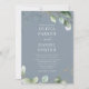 All in One Eucalyptus QR Code Dusty Blue Wedding Invitation
