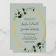 All in One Eucalyptus Real Gold Foil Sage Wedding Invitation... Our "front and back" luxe botanical wedding invitation features a real gold foil oval frame embellished with emerald-hued eucalyptus leaves over a light sage green background. The light sage back of the invitation contains all of the details you would typically see on separate cards in the wedding packet. This modern style wedding invitation was designed to be both elegant and budget conscious... not to mention time-saving. All example text can be easily revised with your own information on the personalisation template.