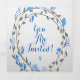 All in One French Blue Grey Floral Wreath Wedding Tri-Fold Invitation