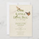 This cute elegant gender neutral baby shower invitation features vintage bugs on an antique paper background with butterfly, caterpillar and flying bug. This Little Love Bug All-in-one baby shower invitation has a place for everything. Add info on books for baby, diaper raffle and gift registry notes all on the back along with QR code for mother-to-be registry, making this a great buget friendly option! Simply personalise the script for your needs with this sweet design.