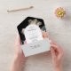 These unique all-in-one wedding invitations are beautifully printed and easy to use! Simply add a stamp to the RSVP postcard, so your guests can easily fill out the RSVP information, tear off and mail back to you! To mail, you can simply fold, seal (using one of the included clear stickers), address and mail! Your guests will love how easy it is to fill in their RSVP, tear off and mail!