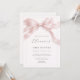 Soft pink all in one baby shower invitation featuring a sweet bow design for a baby girl celebration. Designed with a tear off RSVP postcard for easy guest responses while keeping a charming coquette inspired look. Ideal for baby girl showers, sprinkle parties, and elegant brunch celebrations. Editable text on both panels. Print-ready folded layout.