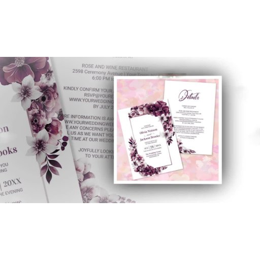 Invite your friends and loved ones to your wedding to witness and celebrate the beginning of your lifelong journey with this pink and plum floral invitation. The customisable text allows you to effortlessly add your names, wedding date, and the necessary details of your celebration. Designed for the budget-savvy couple, the reception venue location, RSVP response request, accommodation details, and any other information your guests may require can be included on the reverse side of this invitation, saving money on extra stationery. A variety of paper types and corner styles are available for your unique invitations, along with the option to download.