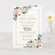 Elegant Watercolor Pink Blush White Floral gold frame & gold script All-In-One Wedding Invitation.