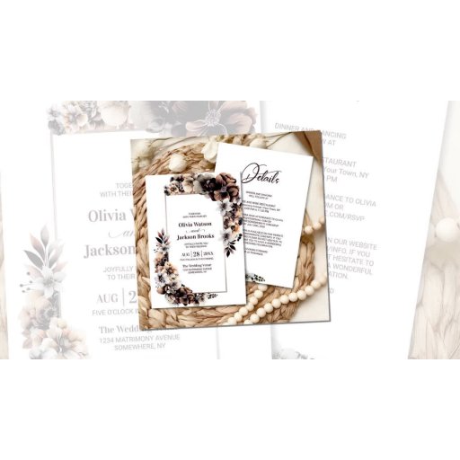 Invite your friends and loved ones to your wedding to witness and celebrate the beginning of your lifelong journey with this rustic autumn floral invitation. The customisable text allows you to effortlessly add your names, wedding date, and the necessary details of your celebration. Designed for the budget-savvy couple, the reception venue location, RSVP response request, accommodation details, and any other information your guests may require can be included on the reverse side of this invitation, saving money on extra stationery. A variety of paper types and corner styles are available for your unique invitations, along with the option to download.