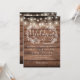 A rustic wedding invitation featuring pretty string lights and a delicate hand-drawn rustic floral garland of botanical leaf foliage with stylish script typography, on a rustic wood background. Personalize with all your special wedding day information on the reverse including your RSVP, accommodation, and additional details. Designed by Thisisnotme©