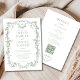 Celebrate your wedding in timeless style with this all-in-one Victorian-inspired invitation in elegant sage green. Featuring delicate floral borders, vintage monogram detailing, and classic typography, this design combines beauty and convenience — perfect for couples seeking refined charm. Personalise with your names, wedding details, and RSVP information, all on one stunning piece. An ideal choice for romantic garden weddings, ballroom receptions, and formal affairs.