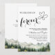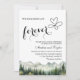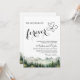 An elegant Wedding Invitation with watercolor mountains and pine trees that you can customise with your details.