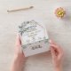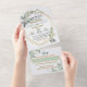 These "Greenery Wedding All in One Invitations" are designed with an easy-to-tear-off perforated RSVP postcard. Just simply fold each card into the outlined shape, and then seal and send - no envelope needed for shipping.