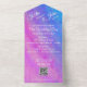 Immerse yourself in the seamless transition of Passionate purple, playful pink, serene blue, and refreshing aqua. Experience the mesmerising dance of emotions through the interplay of colours! This all in one invitation has everything you need! Find other products in our collection for a themed wedding party, bachelorette party, and bridal party products!