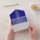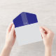 These are handy all-in-one wedding invitations with easy-to-tear perforated RSVP postcards. Just change the text to fit your needs. Shown in navy blue with floral pattern. Use the return address part of the template if you want the address printed directly on the RSVP postcard or you can opt for return address labels. Use the template to personalise.
