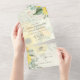 Introducing our beautiful 3-in-1 wedding invitation, featuring a stunning watercolor illustration of Sunflowers. Our invitation is designed to make the wedding planning process easier for you, as it includes a detachable RSVP card that folds and posts without the need for an envelope.
