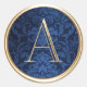 ALL INITIALS Gold Monogram on Navy Blue Damask Classic Round Sticker