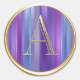 ALL INITIALS Gold Monogram Purple Blue Stripes Classic Round Sticker