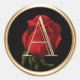 ALL INITIALS Gold Monogram Red Rose Black Classic Round Sticker