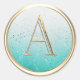 ALL INITIALS Monogram White Aqua Ombre Glittery Classic Round Sticker
