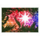 A bright star hanging in a Christmas tree against a sparkling bokeh background in all the colours of the rainbow.