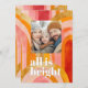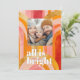 All is bright is the theme of this whimsical brightly coloured holiday photo card featuring rainbow arches in bold pinks, oranges and golds. A photo template is included to personalise with your selected photo. The text template on the back of the card has a pre-written greeting that you can edit as you like or purchase as written. It's a colourful life, and this card projects that happy vibe!