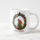 Beautiful All Is Bright Red Cardinal Christmas Wreath Giant Coffee Mug. For the most precious people whom need hope and comfort as red cardinals are spiritual messenger from God. With watercolor red cardinal and green Christmas wreath with ornaments.