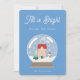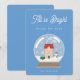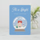 Tarjeta con ilustración de bola de nieve de cristal y fondo azul