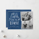 Send stylish holiday greetings to friends and family with our cute All is Calm All is Bright holiday photo card. The card displays the phrase "All is Calm, All is Bright" in white hand-lettering with a dark blue watercolor background. Personalise the front of the card by adding two photos and your names.