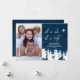 This "all is calm all is bright" christmas photo card is the perfect religious holiday greeting. The design features a winter forest scene with a navy watercolor sky and a brightly shining star of bethlehem. Personalise the card with your family name, first names, and year.