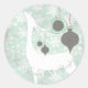 All is Calm All is Bright Deer Christmas holiday round stickers features a white silhouette deer, grey and blue retro style ornaments, text that reads All is Calm All is Bright on a soft blue with white snowflakes background. Look for the matching holiday greeting card, address labels, postage stamps, and envelopes!