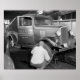 Repairing government trucks. Photo shows a man changing tires on a U.S. Department of Commerce Coast and Geodetic Survey truck. Photograph taken in 1937.