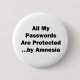 All My Passwords are Protected...by Amnesia 6 Cm Round Badge