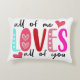 This accent pillow features a vibrant and heartfelt design with the phrase 'all of me LOVES all of you.' The word 'LOVES' is creatively styled with each letter in a different colour and adorned with heart motifs, adding a playful and romantic touch. Perfect for adding a pop of colour and a message of love to any room, this pillow is both a decorative and sentimental piece