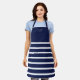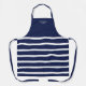 Stylish horizontal white stripes on navy blue apron, and your own name and special words printed on it