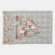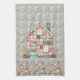 A charming faux patchwork cottage stands center stage, every wall made from tiny quilt-style squares that blend vintage florals, gingham checks, and soft geometrics into a dreamy cottagecore house illustration. The floral quilt pattern of the siding wraps this pastel cottage home in warm pinks, aquas, and creams, while glowing windows and a teal door create a welcoming, whimsical floral house feel. Lush blossoms and greenery frame the steps, adding cozy country farmhouse charm and a hint of shabby chic cottage decor that feels nostalgic yet fresh. Subtle stitched details suggest a quilt block house design, turning this scene into a sweet storybook cottage print perfect for lovers of sewing, quilting, and cottagecore coziness. AI generated artwork.
