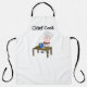 This apron has my cartoon drawing of a chef mixing something up in a mixing bowl. He is standing behind a table and is wearing a chef hat and an apron.