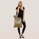 A stylish monogrammed tote bag with your initial on a pattern background of yellow pineapples