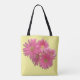 There are so many stories about the daisy. In literature, Goethe immortalised the daisy when Marguerite needed to know if Faust loved her as she plucked the daisy petals and said, "He loves me. He loves me not." The daisy received its scientific name, Bellis, from mythology. It is said that the guardian deity of the orchards pursued a young tree nymph without reciprocation. As she sought to escape him, the nymph asked the gods for help. The powerful king of Argos was grandfather to the nymph, so when she appealed to the gods for help, they transformed her into a tiny flower named Bellis, allowing her to escape a terrible fate. There is also a Christian legend involving this cheerful flower. It tells that the Wise Men, while on their journey to find the Baby Jesus requested a sign to help them find the actual birthplace once in Jerusalem. They noticed many clusters of small, white, daisies near a stable. Recognising the flower's resemblance to the star overhead, they knew they had found the Holy Family. The name, "Daisy" is thought to come from Anglo Saxon words "daes eage" meaning, literally, "day's eye". The daisy is believed, by some, to be the bringer of good fortune and blissful pleasure. Others say it symbolises innocence and purity. Along with the Sweet Pea, the Daisy is also one of APRIL's birth flowers. For such a simple little flower, the daisy has a long, impressive list of stories surrounding it. These Gerbera or "Gerber" daisies are generally larger than their "true daisy" relatives, some as large as small sunflowers. Gerbera daisies are the 5th Most Popular Flower In The World! Gerbera daisies represent cheerfulness, joy, friendship and good luck. The DARK pink Gerbera daisy, specifically, is symbolic of gratitude and a beautiful way of saying, "Thank you". These incredibly lovely flowers are of the "single Gerbera" variety, as noted with the single-sized petals and greenish-yellow eye. They are offered on a sunny, yellow backdrop on this terrific tote, making it an excellent choice for Mother's Day.