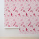 This wallpaper features a mid century modern atomic pattern of diamonds, rectangles and boomerangs in shades of pink for a retro 1950s look.