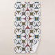 This towel set has a turquoise washcloth, a purple hand towel, and a bath towel with a mid-century modern design of four-point and three-point stars in retro colours.